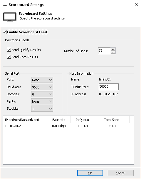 Setup Mylaps Orbits network IP and port in CICADA, the default is port is 50000.